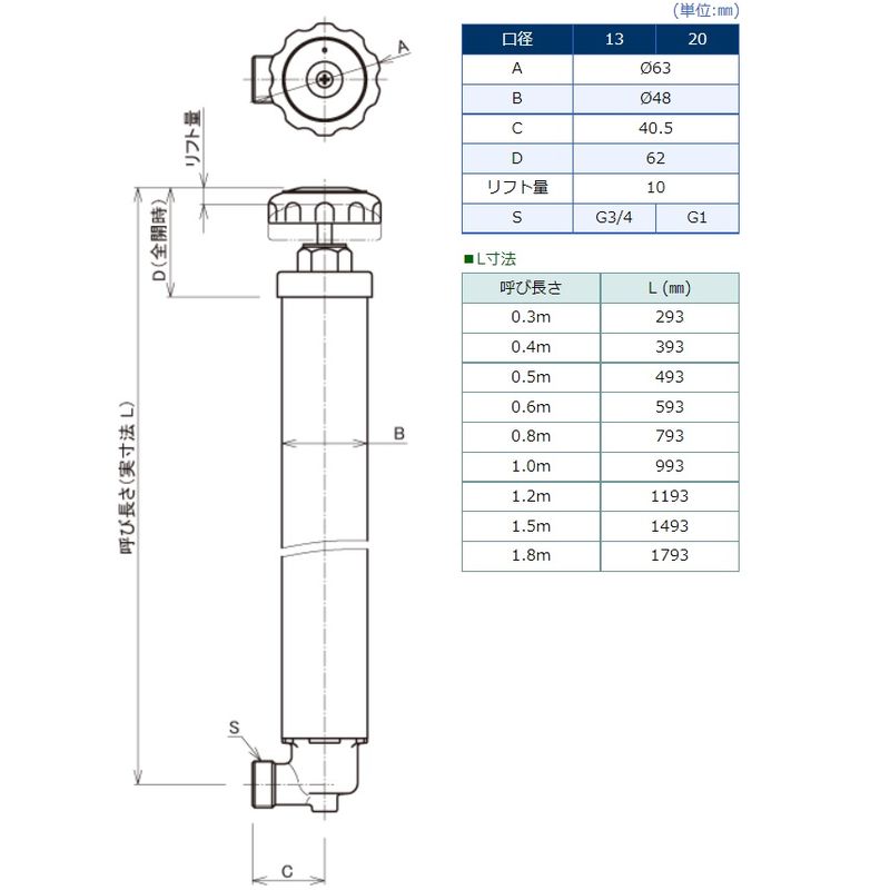 埋設タイプのドレン専用水抜栓。主に給湯配管の末端に設置します。