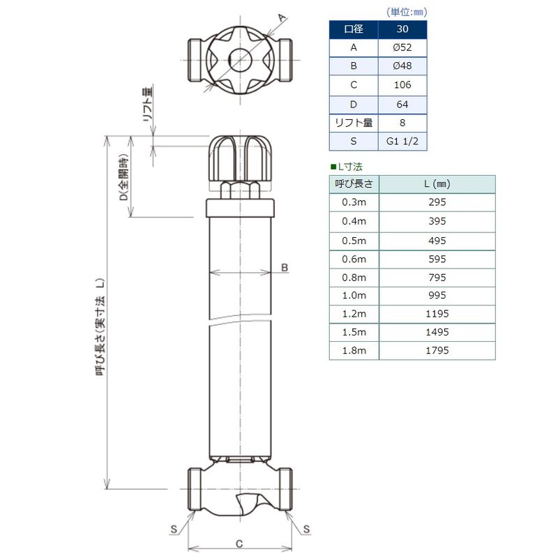 MT-2 不凍水抜栓 30mm(大口径) VPシモク付