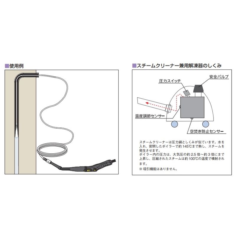 水道管の解凍以外にも、スチームクリーナーとして日常の殺菌・清掃に使用できます。