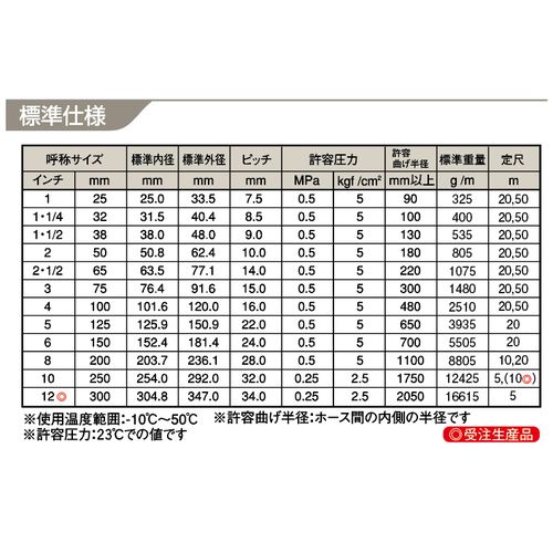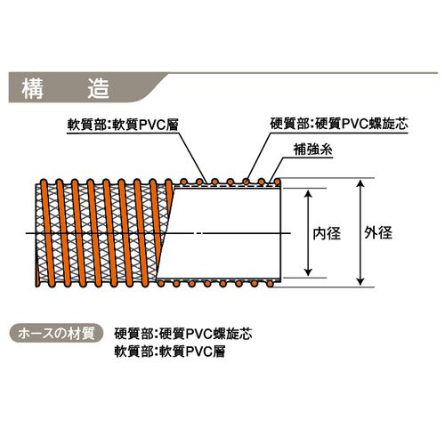 補強糸が加圧によるホースの伸びを抑え、安定した流体輸送ができます