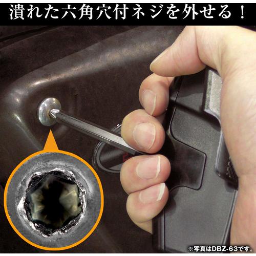 独自の先端形状により、潰れた六角穴付きボルトを叩かず外せます。