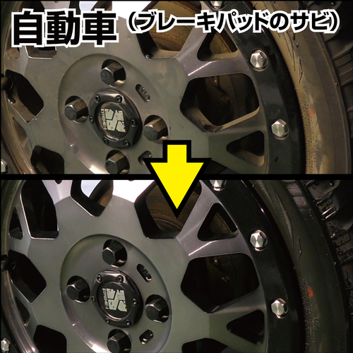 自動車、オートバイ、キッチン用品、農機具、配管部品などさまざまな場所の錆び取りに。