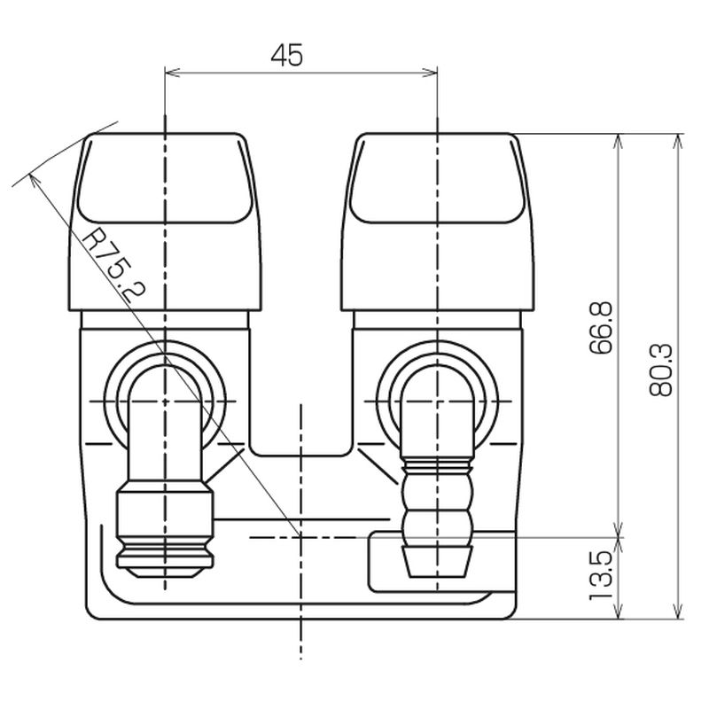 G025Z-12P LB二口ペアON・OFFヒューズガス栓 (L)