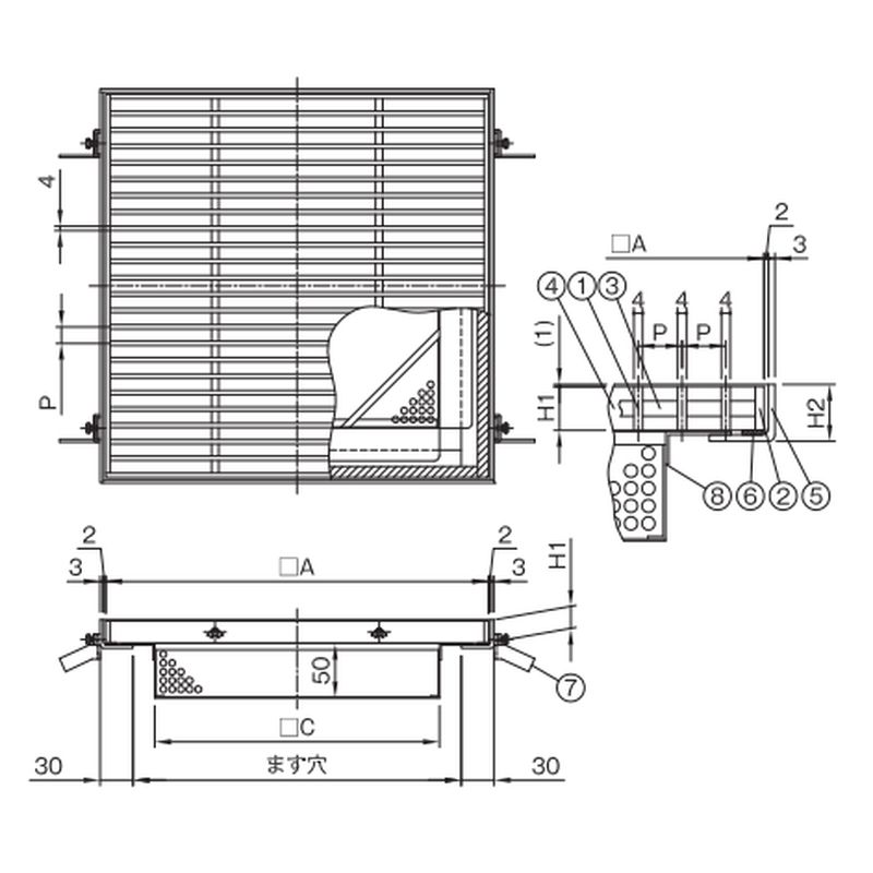 DFGM4-FLCS 浅型落ち葉キャッチャー付 ます蓋用グレーチング