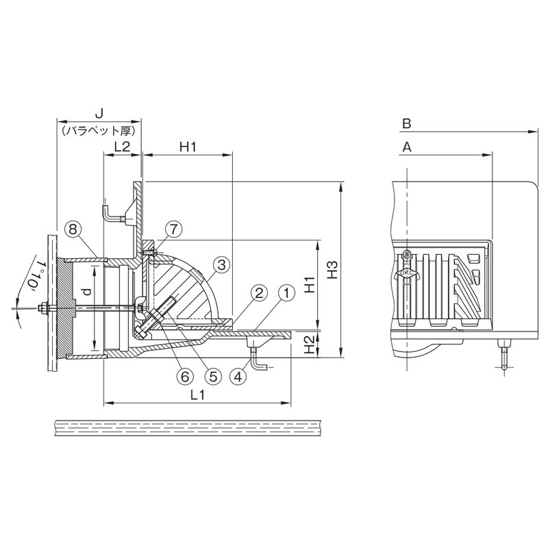 ご注文の際にパラペット厚(コンクリート厚)をご指示下さい。