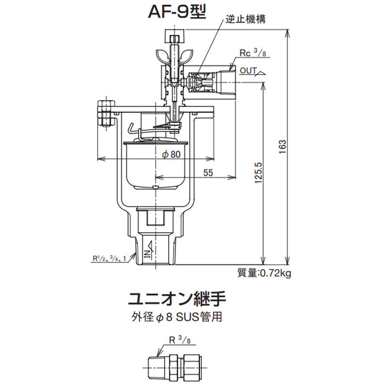 AF9-DU 空気抜弁 (ユニオン継手付・90℃以下)