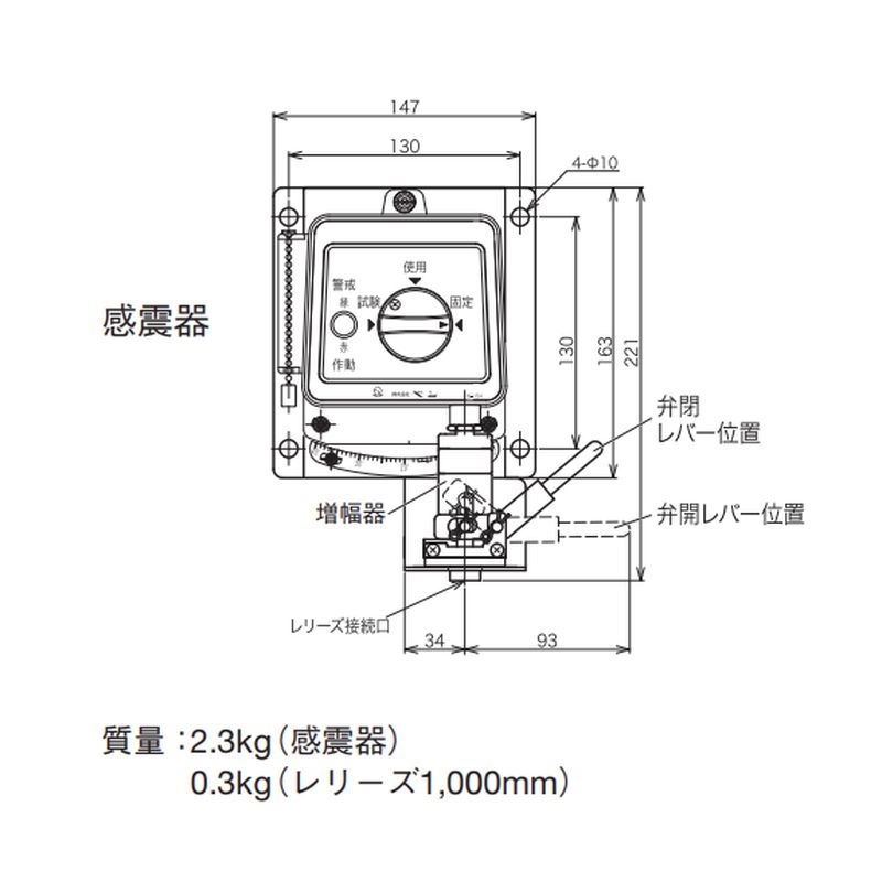 感震器作動時弁閉(感震器、増幅器復帰後、手動にて弁開)