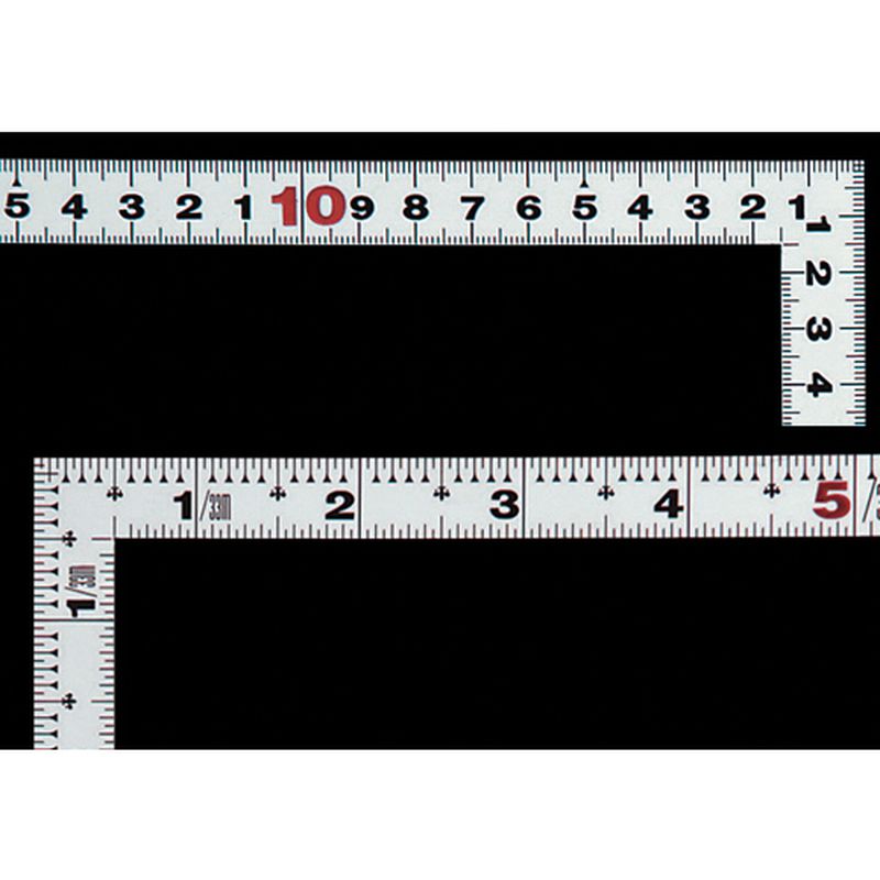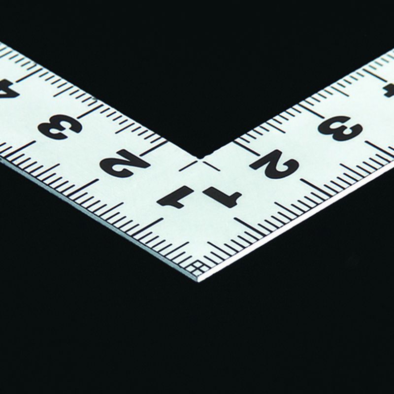 角が薄く平たいので細かい材料にもピタリと張り付き、ケガキやすく測りやすくなっています。