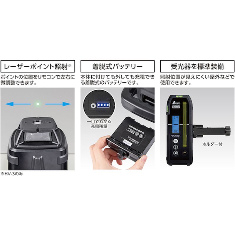 付属の受光器を使用することで、照射位置が見えにくい屋外などで使用可能です。