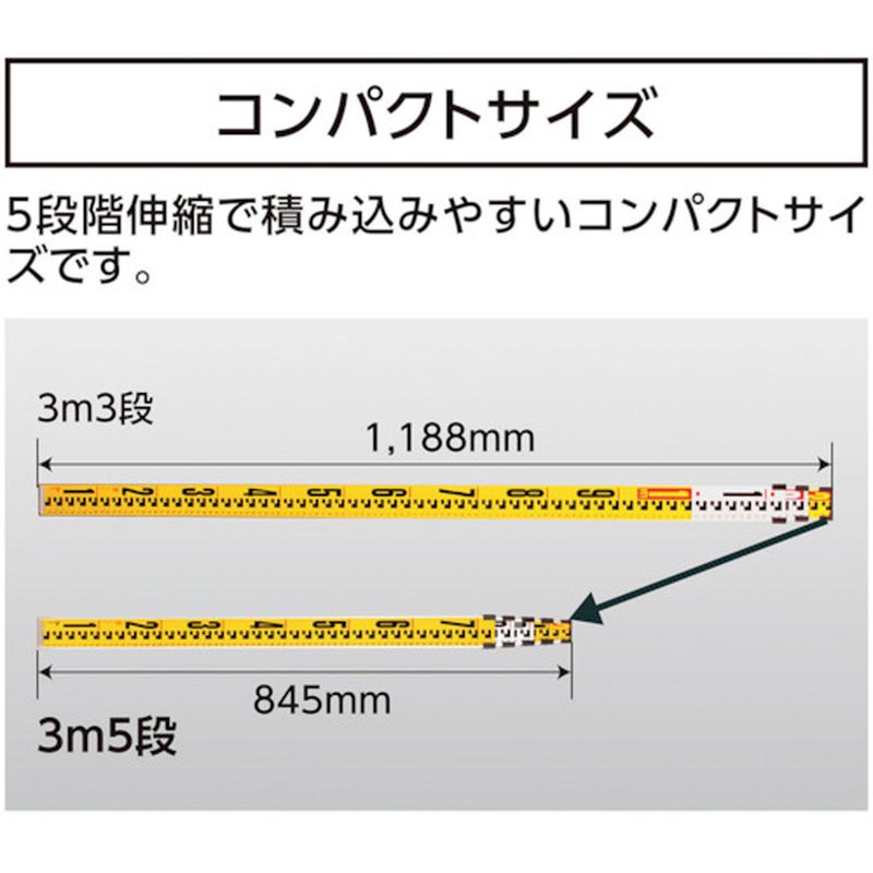 5段階伸縮で積み込みやすいコンパクトサイズです。