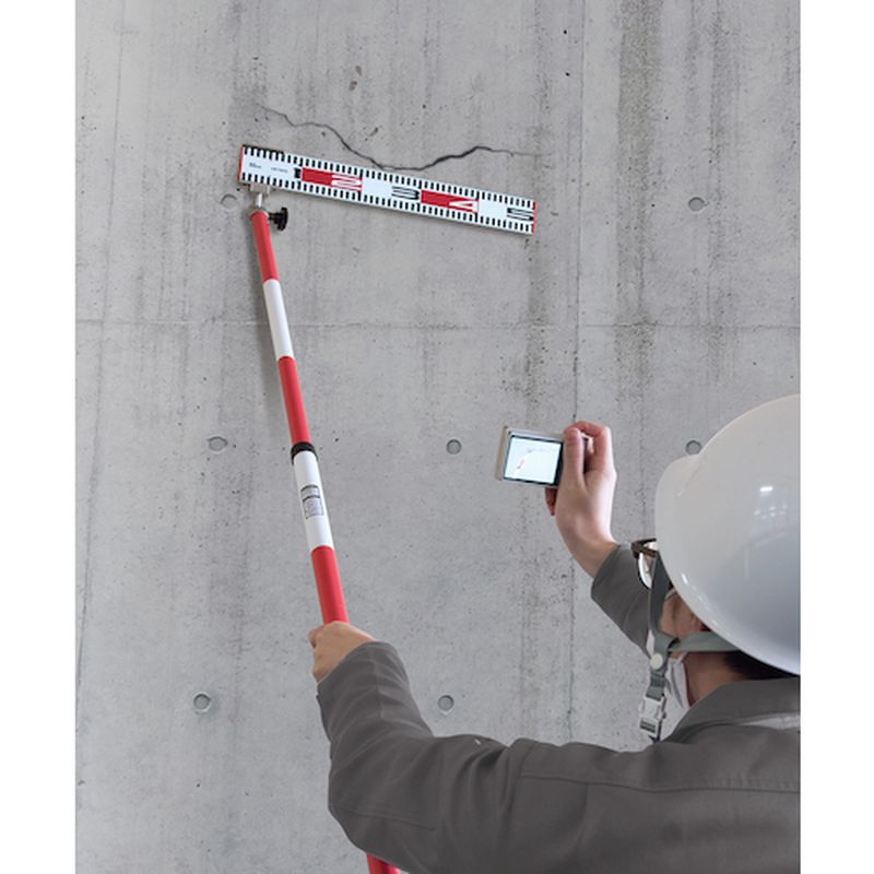 ポールに標尺が付いているので、高所のヒビや剥離している箇所などに直接当てて計測できます。