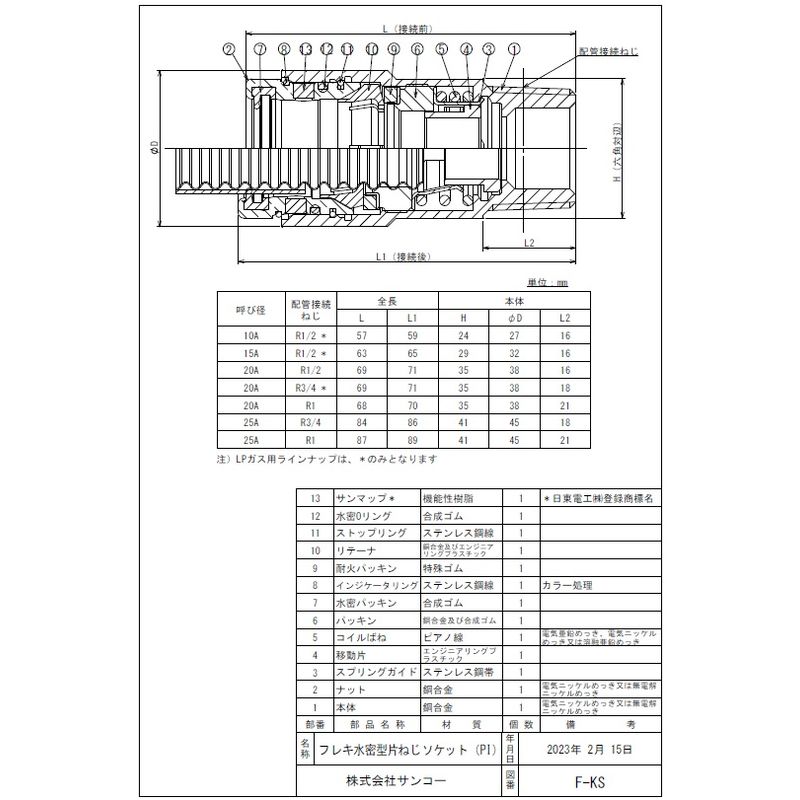 SIS 片ねじソケット ガス用フレキ管用プッシュインパクト継手