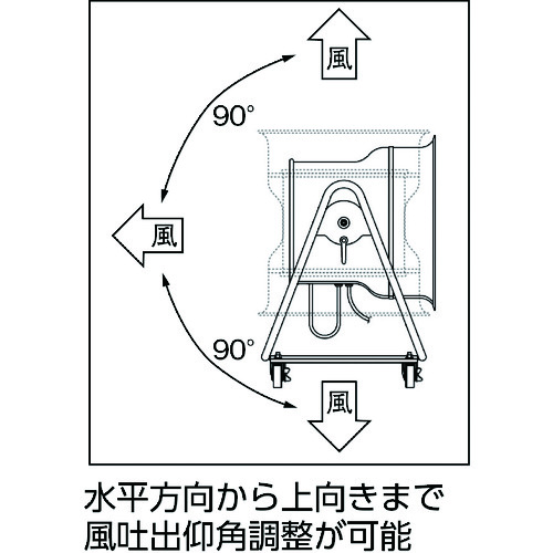 レバーで簡単に風の俯仰角方向に180度調整可能