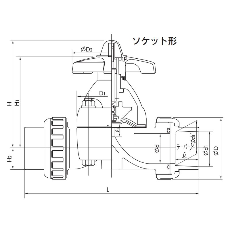 VT1MHU2SJ-1 自在ダイヤフラムバルブ14型 (ソケット形・U-PVC・JIS)禁油品