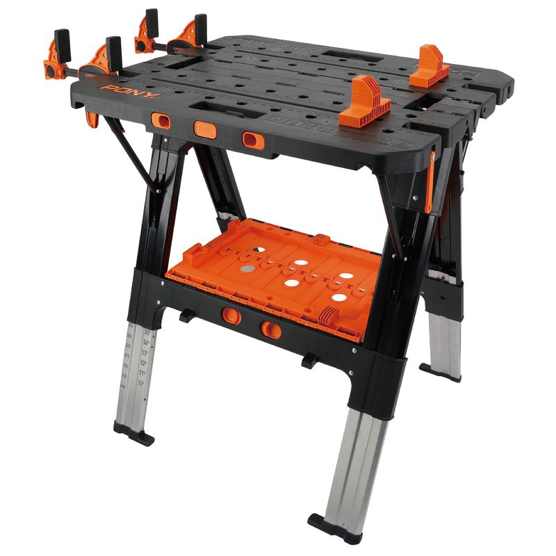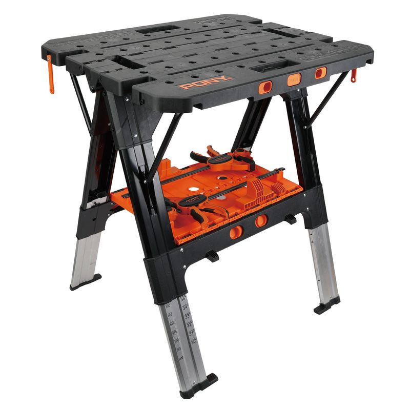 ワークテーブル本体、ベンチドッグ大小×各2個、セーフティストラップ×2個、Fクランプ(PC E-Z HOLD 12" Medium Duty Expandable Clamp /Spreader)×2個